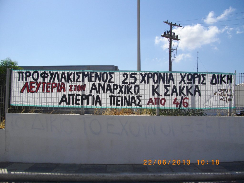 Η σκανδαλώδης όσο και παράνομη και αντισυνταγματική παράταση της προφυλάκισης του Κώστα Σακκά είναι δείγμα της εξοντωτικής μεταχείρισης που επιφυλάσσει το κράτος απέναντι στους κοινωνικούς, ταξικούς και πολιτικούς του εχθρούς.